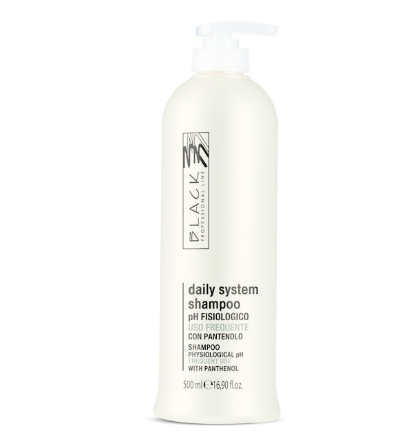 شامپو روزانه بلک پروفشنال لاین Black Daily System دارای فرمول ملایم و بافت شفاف ژلی برای پاک کنندگی روزانه انواع موها همراه با تقویت و بازسازی می باشد. این شامپو حاوی پرو ویتامین B5 (پنتنول) برای تقویت و بازسازی موه از ریشه تا انتها و ابریشم هیدرولیز شده برای لطافت بخشی تارهای مو است. شامپو روزانه بلک پروفشنال همراه با ملایمت کامل pH فیزیولوژیکی مو را حفظ می کند.