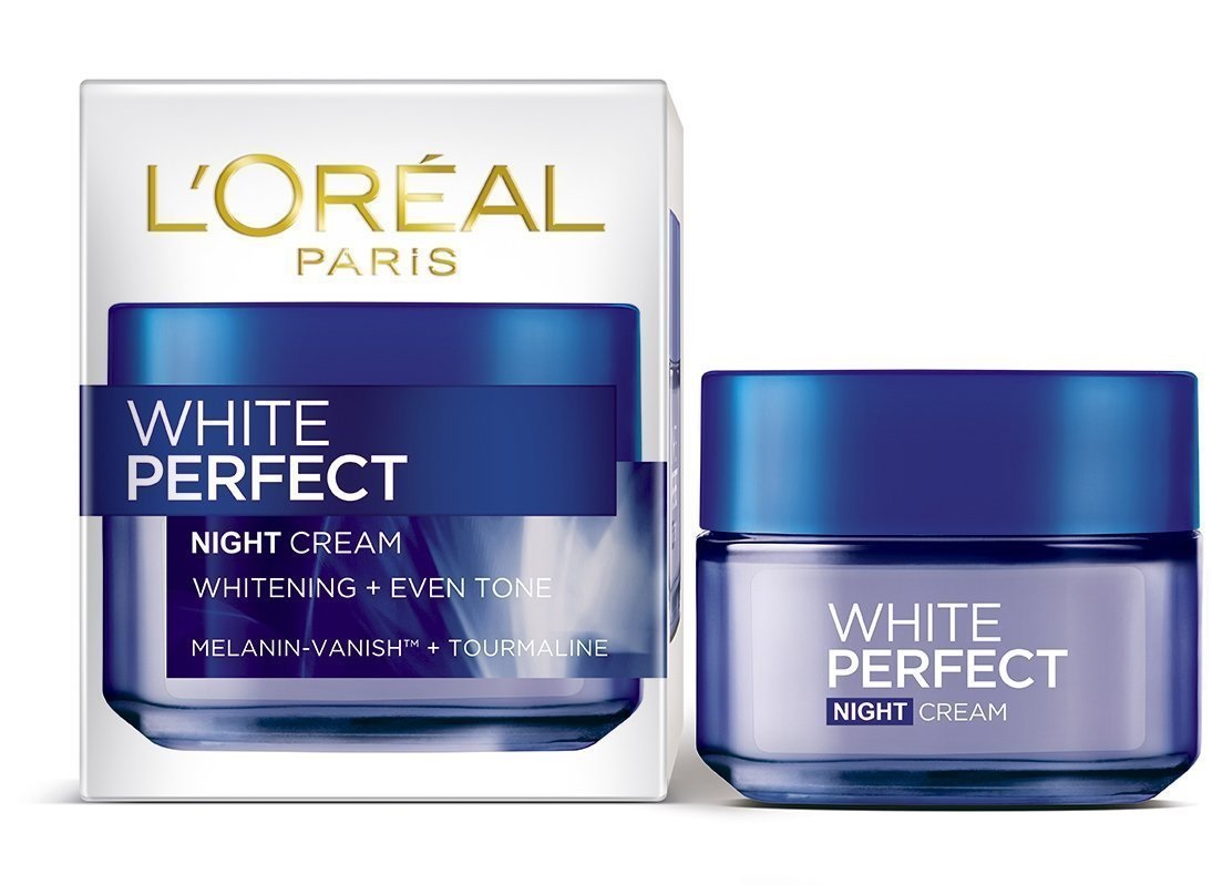 کرم روشن کننده شب لورال مدل LOreal White Perfect Night Cream محو کننده ملانین و حاوی تورمالین بوده و نقاط تیره پوست را کاهش داده و باعث روشنتر شدن پوست می شود. کرم روشن کننده شب لورال از تولید ملانین توسط سلول های رنگی جلوگیری کرده و نقاط تیره و جای جوش را رفع می کند. استفاده از کرم شب لورال باعث می شود پوست شما شفاف تر و درخشان تر شود.