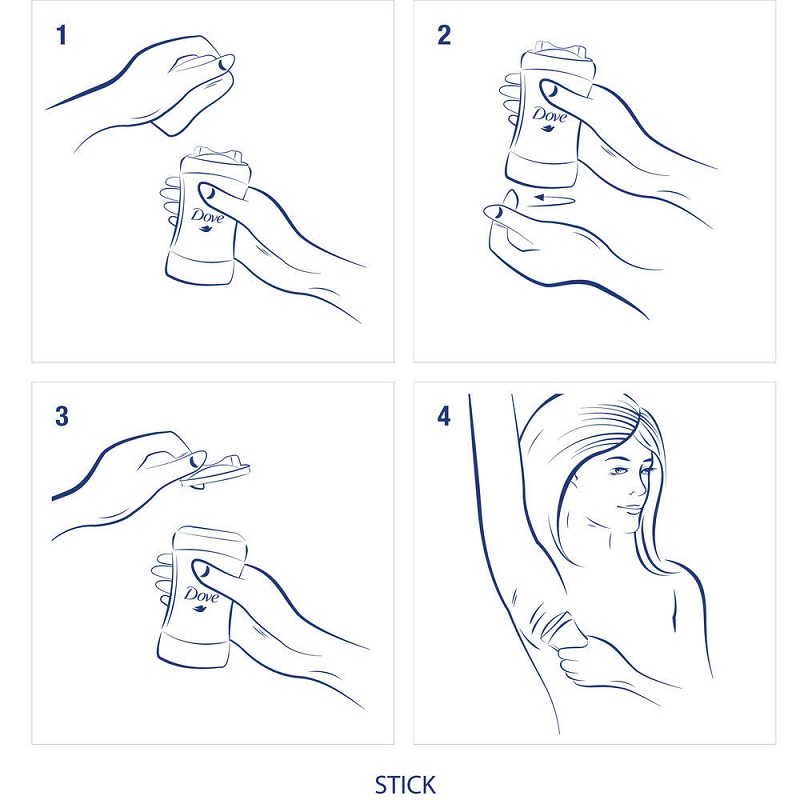 قسمت پایین دئودورانت را بچرخانید استیک جامد به سمت بالا می آید و دو بار پایین به بالا زیر بغل بمالید.