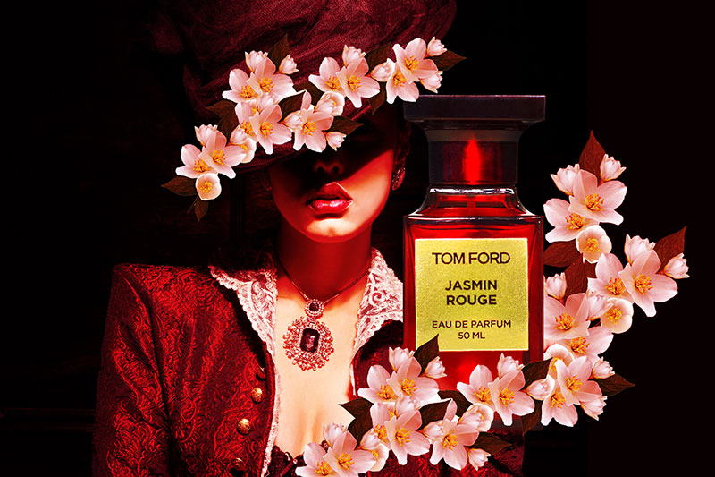 عطر زنانه تام فورد جاسمین رژ tom ford jasmine rouge محصول سال 2011 برند معروف تام فورد عطری است تند و شیرین. جاسمین رژ روژ با رایحه ی ملایمی از گل یاس آغاز می شود و کم کم شیرینی آن بیشتر می شود و در انتها به تلخی کمی از رایحه های چوبی می رسد. در طراحی بطری جاسمین رژ از خطوط صاف و بدون انحنا استفاده شده و شکل مکعب گونه آن حسی اصیل و قدرتمند را منتقل می کند. تام فورد جاسمین رژ در گروه عطرهای شرقی است و برای تمام فصول مناسب می باشد.