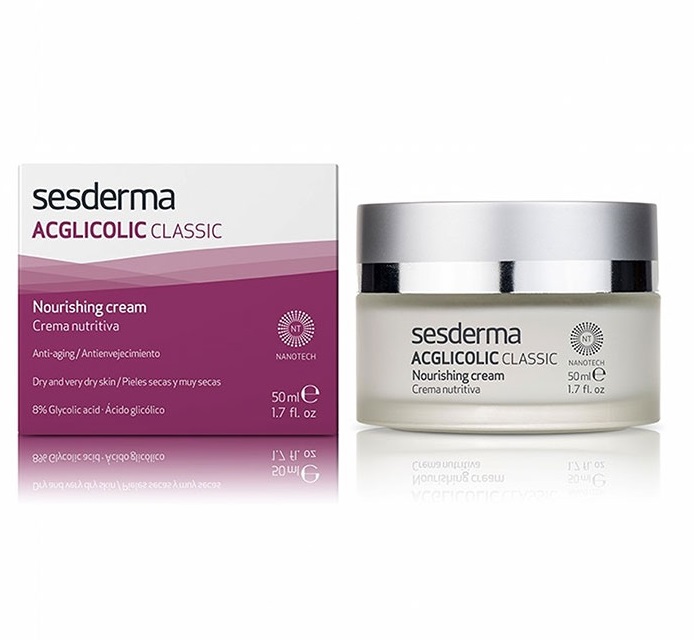 کرم مغذی و ضد چروک شب سسدرما گلیکولیک کلاسیک Sesderma Acglicolic Classic مخصوص پوست های خشک و خیلی خشک بوده و حاوی مواد موثره گلیکولیک اسید و هیالورونیک اسید می باشد.