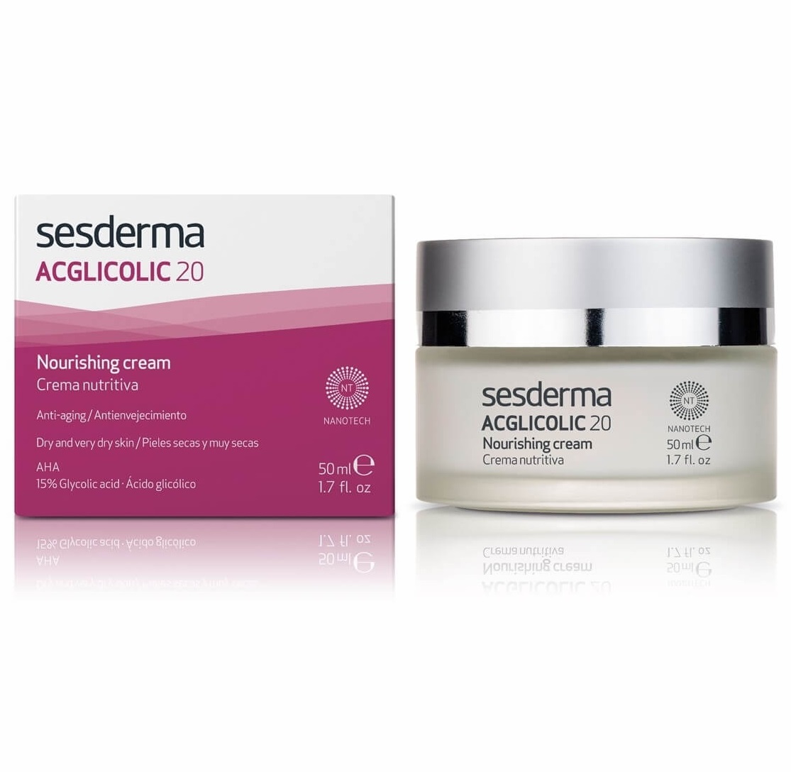 کرم مغذی و ضد چروک شب سیسدرما ای سی گلیکولیک Sysderma Acglicolic 20 حاوی گلیکولیک اسید، هیالورونیک اسید، سرامید، باسولیک اسید و روغن جوجوبا بوده و برای پوست های خشک و خیلی خشک مناسب است.
