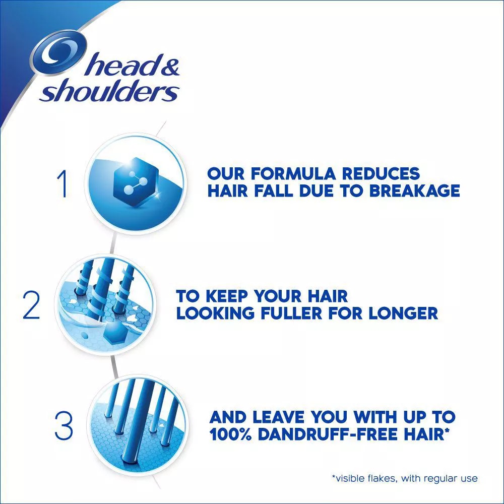 شامپو ضد شوره هد اند شولدرز Head And Shoulders دارای 3 عملکرد پاک کنندگی، محافظت کنندگی و رطوبت رسانی می باشد. داشتن موهای سالم از پوست سر سالم شروع می شود، شامپو مردانه هد اند شولدرز با فرمول پیشرفته از خارش، خشکی و تحریک پوست سر جلوگیری می کند و با تقویت موهای نازک در حین پاک کنندگی روزانه ضخامت موها را بازمی گرداند.