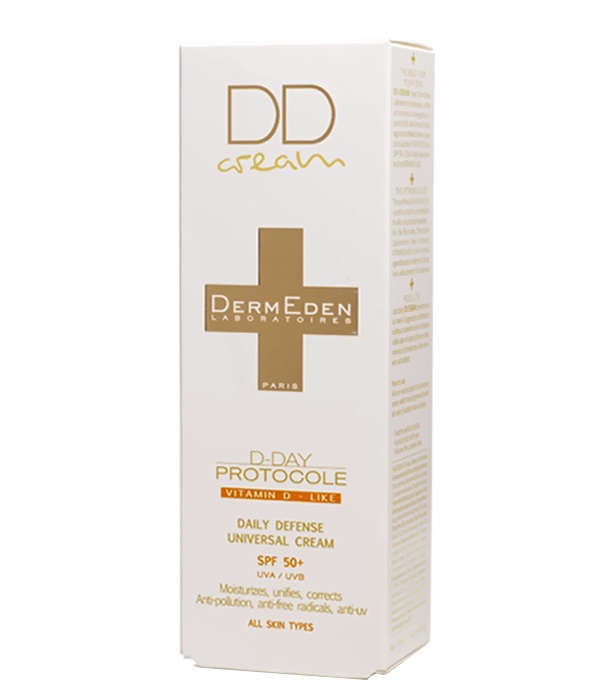 کرم محافظت کننده روزانه درمدن Derm Eden D-Day Protocole Cream SPF 50 دارای ترکیب فوق العاد و شبه ویتامین D پوست را رطوبت رسانی کرده و از آن در برابر پرتوهای خورشید و آلودگی های محیطی محافظت می نماید. این کرم مناسب انواع پوست بوده و دارای رنگدانه های هوشمند میکرو کپسول است که قدرت انطباق با رنگ پوست را دارند.