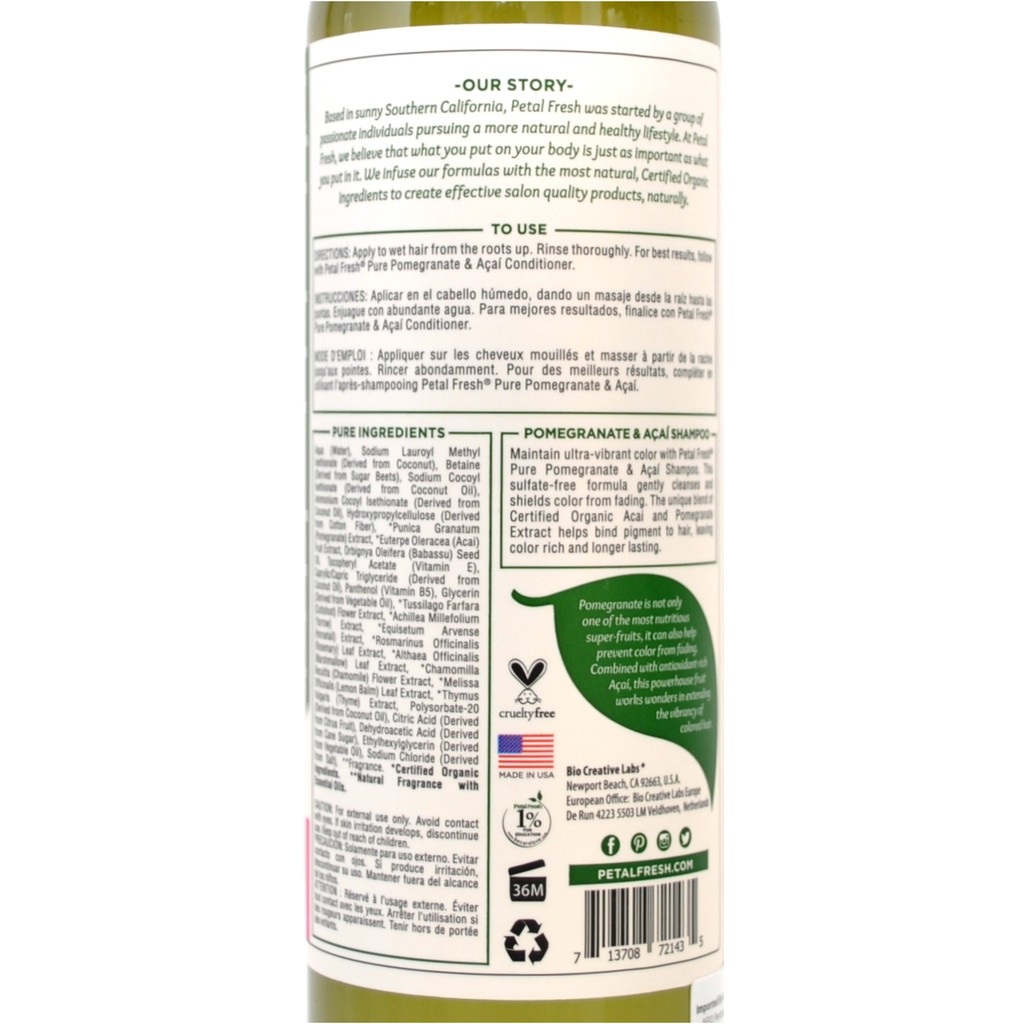 شامپو موهای رنگ شده پتال فرش انار و نخل آسای Petal Fresh Color Protection حاوی فرمول ملایم بوده و از مات شدن رنگ مو جلوگیری می کند. عصاره های ارگانیک انار و نخل آسای محافظت کننده رنگ دانه های مو و درخشان کننده رنگ مو می باشند.