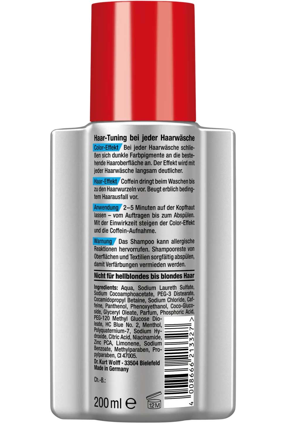 شامپو ضدریزش و تیره کننده موی آلپسین تونینگ Alpecin Tuning دارای فرمول پیشرفته توسعه یافته در آزمایشگاه دکتر ولف و مناسب برای تقویت موهای ضعیف و نازک، کاهش ریزش مو و افزایش تیرگی و پوشش اولین تارهای موی سفید می باشد. شامپو کافئین آلپسین دارای ترکیب انحصاری ثبت شده جهت فعالسازی فرایند رشد مو است، این فرایند همراه با افزایش ضخامت و استحکام موها همراه است. این فرمول همچنین حاوی رنگدانه های تیره برای پوشش تارهای سفید و افزایش تیرگی بدون نیاز به رنگ مو می باشد. شامپو کافئین آلپسین پس از سال ها تحقیق بر روی الگوی رشد مو، موثرترین و دقیق ترین فرمول و دوز مواد تشکیل دهنده را جهت جلوگیری از ریزش و افزایش ضخامت موها در خود جای داده است. این ترکیب علاوه کافئین جهت تقویت و انرژی بخشی مو، حاوی پنتنول (پرو ویتامین B5)، نیاسین آمید (پرو ویتامین B3) و نعناع جهت تقویت ریشه مو و تسکین پوست سر می باشد.
