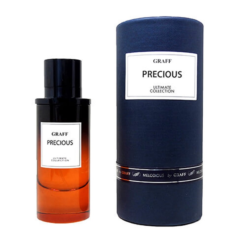 عطر گراف پرسیوس Graff Precious دارای رایحه شرقی و پودری می باشد و رایحه آغازین آن با نارنگی ماندارین سیسیلی آغاز شده و پس از آن به قلب گل های رز می رسد. رفته رفته نت ها حالت پودری بیشتر به خود میگیرند و با وانیل و چوب صندل و صمغ ملایم تر و سنگین تر می شوند.