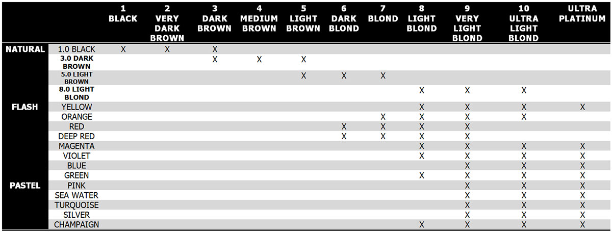 برای استفاده از رنگ موی بس مووی کالر، مقدار مورد نیاز را بر روی موهای مرطوب ماساژ داده سپس 25 دقیقه صبر کرده و سپس آبکشی می نمایید. شماره های قابل استفاده رنگ موی مووی کالر با توجه به پایه رنگ موی فعلی شما به صورت جدول زیر است. اگر پایه رنگ موی شما با رنگ مووی کالری که میخواهید استفاده کنید مطابقت ندارد باید موهای خود را دکلره کنید سپس از رنگ بس مووی کالر استفاده کنید.