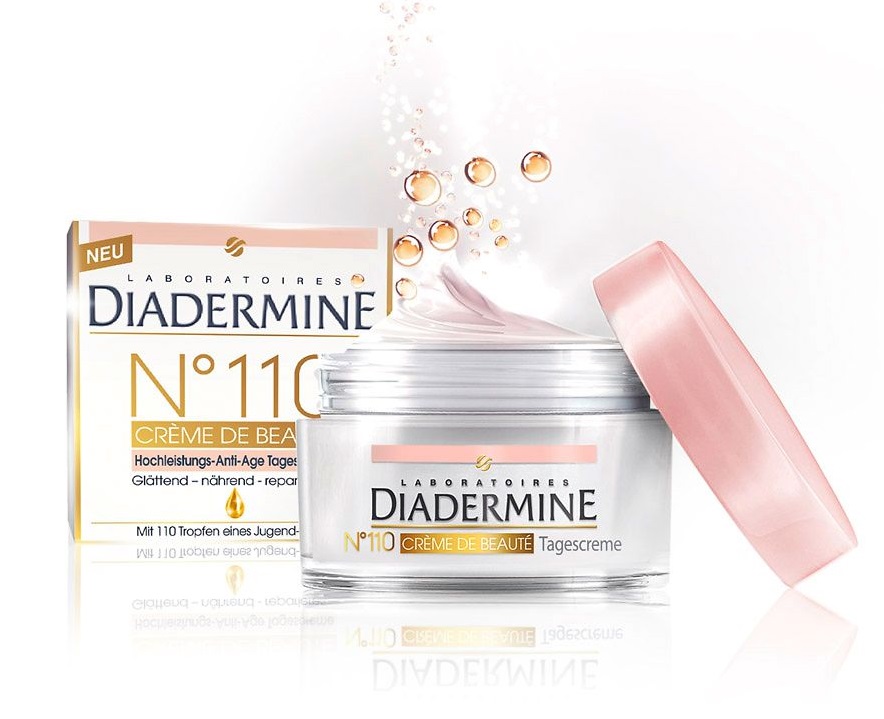کرم ضد پیری 110 درجه دیادرماین Diadermine N 110 Creme De Beaute حاوی 110 قطره اکسیر جوانی از 11 ماده ضد پیری از جمله پرو ویتامین B5، تورین، آرژنین، ویتامین E و F و هیالورون می باشد.