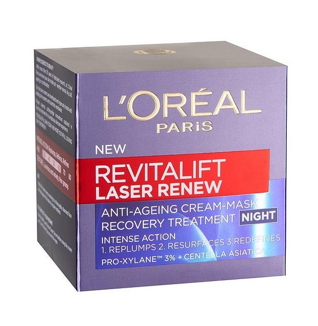 کرم ضدچروک شب لورال رویتالیفت لیزر Loreal Revitalift Laser X3 Night دارای فرمول قدرتمند با سه عملکرد تصحیح کننده خطوط چروک، افزایش بازتولید سلول های پوست و بازسازی نمای جوان صورت می باشد. کرم لیزر شب لورال حاوی هیالورونیک اسید جهت آبرسانی قوی پوست در زمان استراحت در شب، عصاره گیاه سنتلا آسیاتیکا با خواص ترمیم کنندگی و بازسازی قوی پوست به همراه کمپلکس کنستانتره 3 درصد پرو زیلان استخراج شده از سلولزهای جلبک دریایی با خواص آبرسانی و ضدچروک قوی است. این فرمول با بافت ابریشمی مانند یک ماسک مجازی عمل می کند و مواد مورد نیاز را در لایه های عمقی در طول شب جذب پوست می کند، در نتیجه با تاثیرگذاری قوی همانند یک جلسه لیزر درمانی پوستی صاف و جوانتر خواهیم داشت.