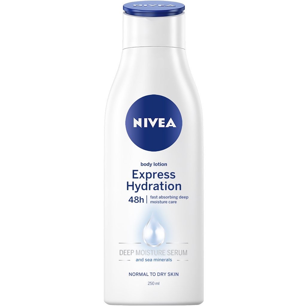 لوسیون مرطوب کننده بدن نیوا Nivea Express Hydration حاوی مواد معدنی دریایی و سرم مرطوب کننده عمیق نیوا بوده و با جذب شوندگی سریع و بافت سبک برای 48 ساعت پوست را رطوبت رسانی می کند. لوسیون اکسپرس هیدریشن نیوا برای آبرسانی سریع و عمیق و رفع خشکی پوست طراحی شده و با اولین استفاده احساس پوستی آبرسانی شده و هموارتر را به ارمغان می آورد.