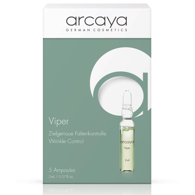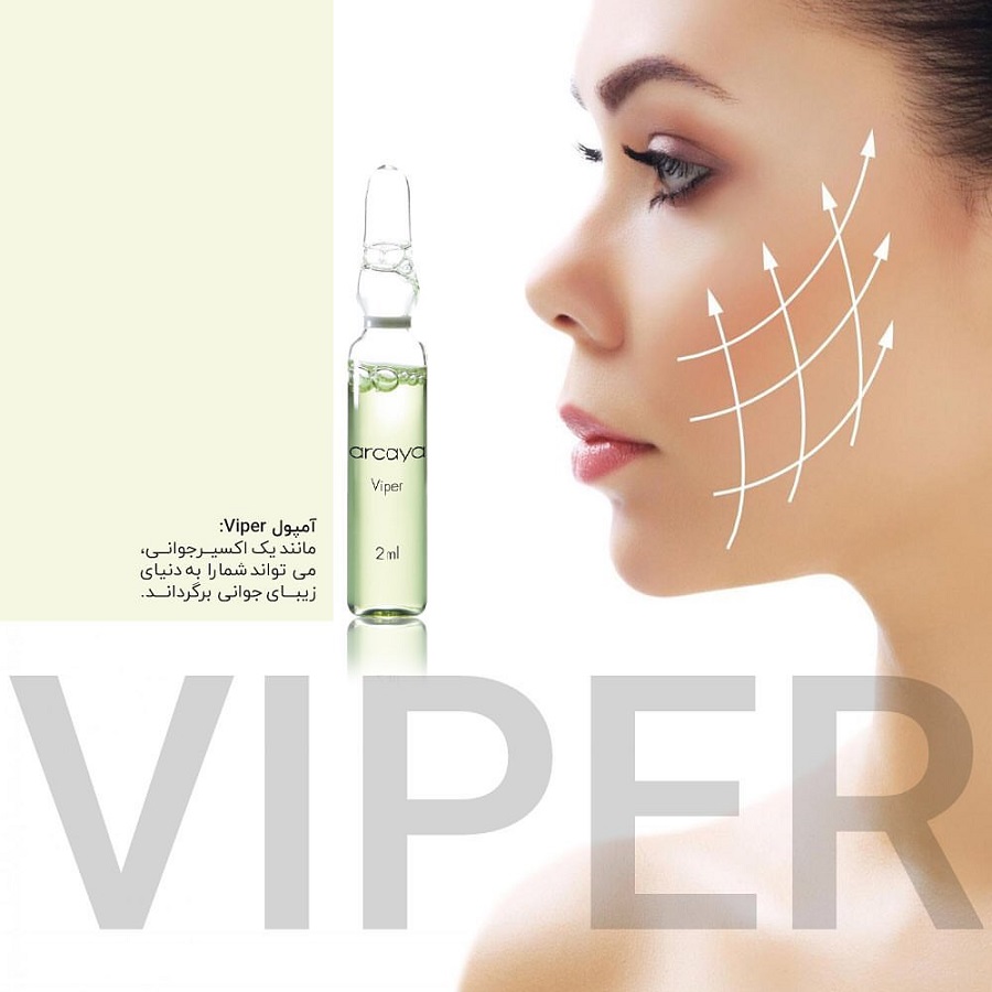 سرم ضد چروک قوی آرکایا وایپر Arcaya Viper حاوی آرژیرلین بوده که یک ضد چروک قوی است و مانند بوتاکس عمل می کند. سرم ضد چروک وایپر آرکایا به منظور تصحیح و صاف سازی خطوط میمیک صورت طراحی شده است. آرکایا وایپر به کمک کاهش فعالیت ماهیچه های صورت پوست را نرم تر و سفت تر می کند و ظاهر صورت شما جوان تر می شود. وایپر برای چروک های پیشانی دور چشم و اطراف دهان مناسب می باشد و همچنین می تواند همراه لیزر و اولتراسوند مورد استفاده قرار گیرد.