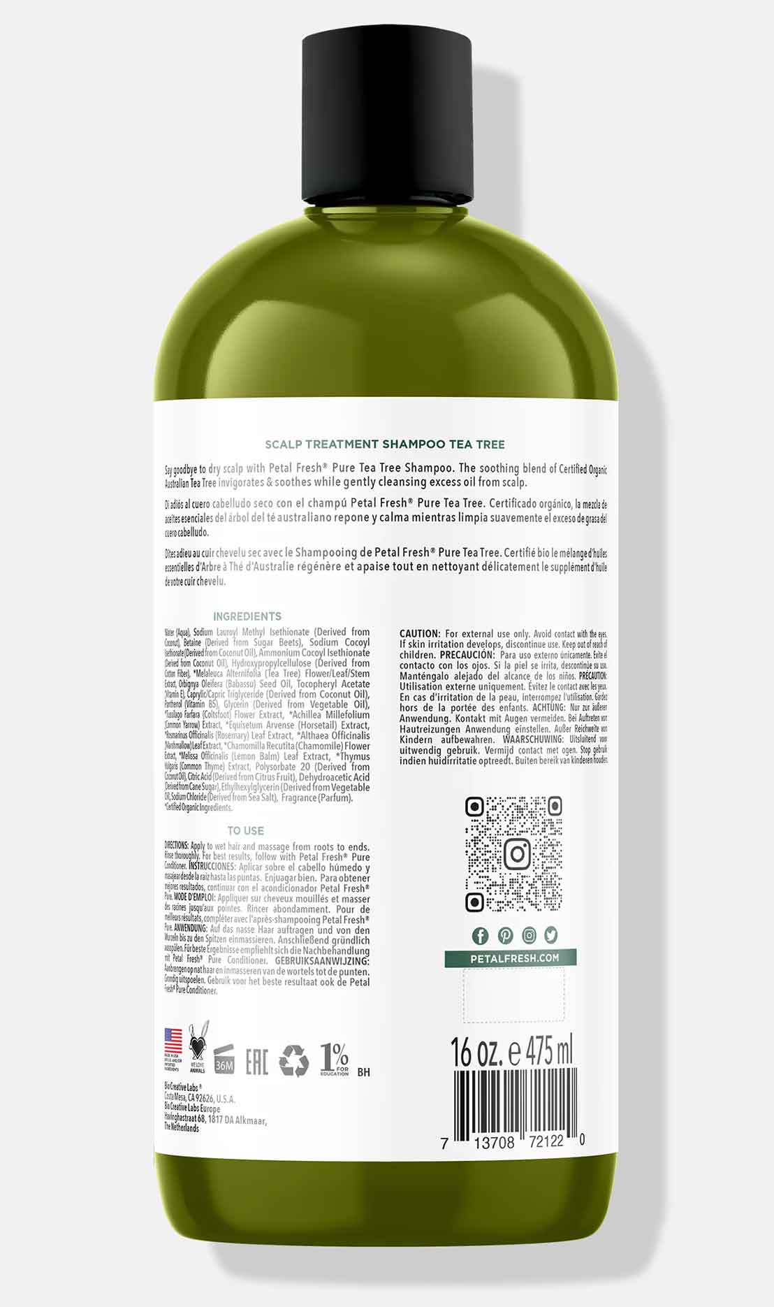 شامپو رفع خشکی پوست سر پتال فرش Petal Fresh Tea Tree حاوی عصاره درخت چای استرالیایی بوده و خشکی و خارش پوست سر را برطرف می کند.