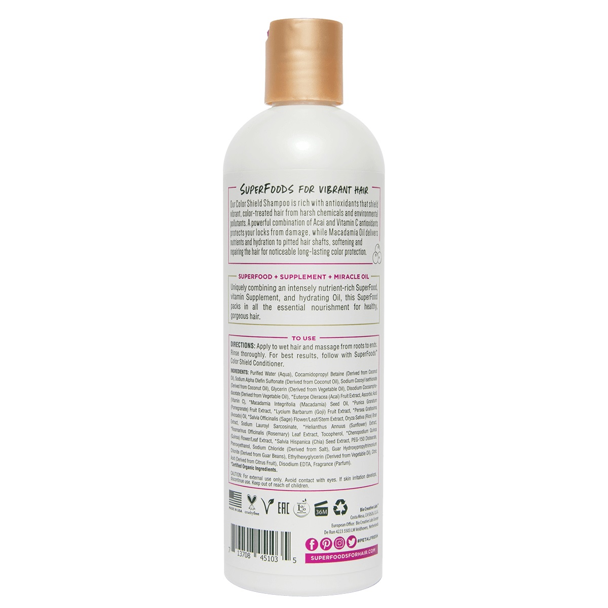 شامپو موهای رنگ شده پتال فرش سوپر فودز آسای Petal Fresh Super Foods Acai حاوی عصاره میوه نخل آسای، ویتامین سی و روغن ماکادمیا (فندق استرالیایی) می باشد. این مواد ارگانیک با رادیکال های آزاد مقابله کرده و ب ایجاد لایه محافظ اطراف فیبر مو، از مات شدن رنگ مو جلوگیری می کنند. عصاره نخل آسای و ویتامین سی از آسیب مو جلوگیری کرده و ماکادمیا باعث نرمی و استحکام مو می شود به طوری که تفاوت را احساس خواهید کرد.