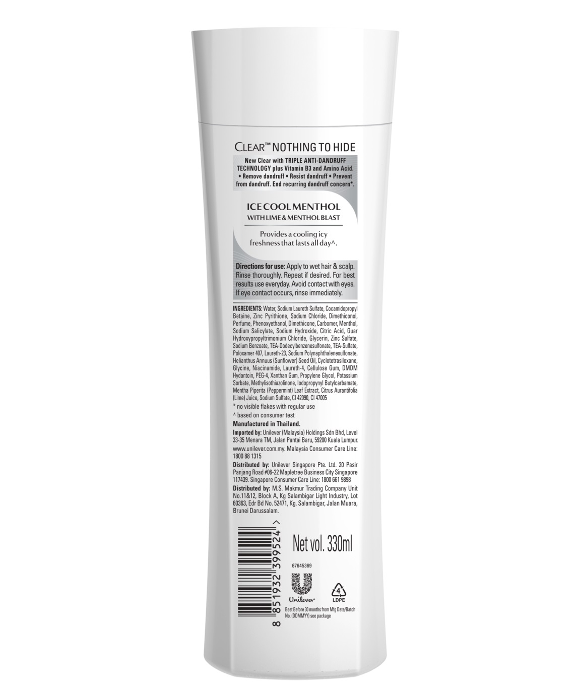 شامپو ضد شوره و خنک کننده جدید بانوان کلیر مدل Clear Ice Cool Menthol حجم 330 میلی لیتر
