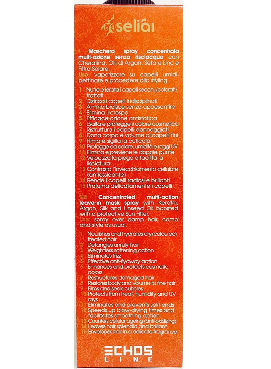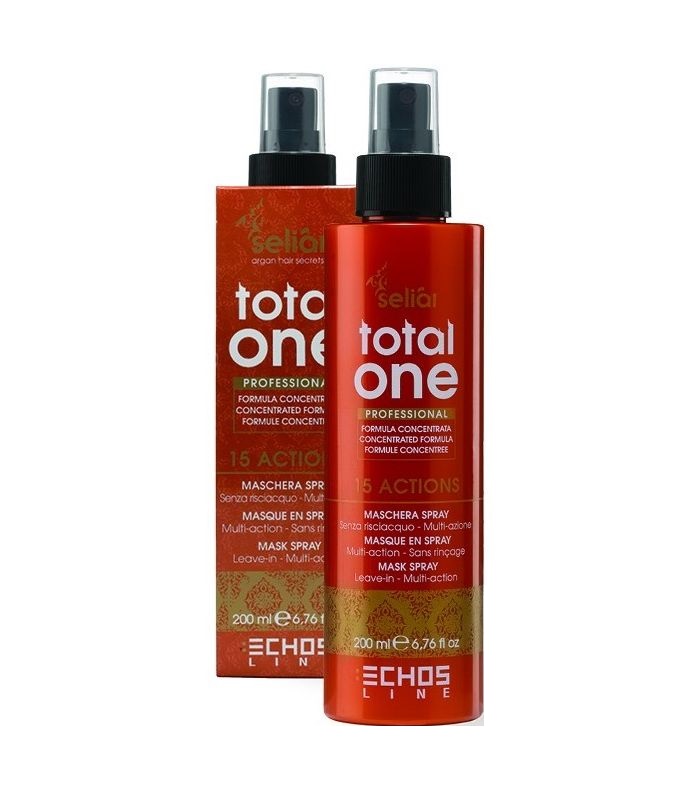 اسپری ماسک مو اچ اس لاین توتال وان Echos Line Total Line به صورت کنستانتره و ماسک موی بدون نیاز به آبکشی بوده و دارای 15 عملکرد می باشد. اسپری موی اچ اس لاین حاوی کراتین، روغن آرگان، ابریشم، روغن دانه سویا و فیلترهای محافظت در برابر پرتوی آفتاب می باشد. ویژگی های اسپری کراتینه اچ اس لاین شامل موارد زیر می باشد: