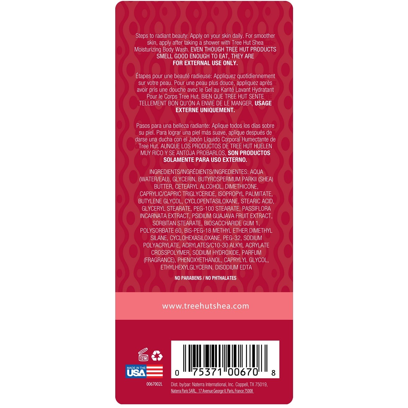 لوسیون بدن آبرسان پشن فروت و گواوا تری هات Tree Hut Passion Fruit Guava محصولی فوق العاده جهت رطوبت رسانی قوی و حفظ سلامت و شادابی پوست می باشد. لوسیون بدن تری هات حاوی شی باتر کاملا خالص و ارگانیک بوده که مرطوب کننده عمیق پوست، ترمیم کننده، استحکام بخش و مقابله کننده با فرایند پیری می باشد. علاوه بر این عصاره پشن فروت و گواوا به همراه ویتامین A، C و E با خاصیت روشن کنندگی و صاف کنندگی پوست در لوسیون بدن تری هات قرار گرفته اند.