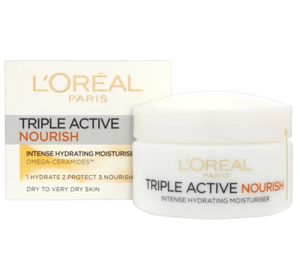 ژل کرم مغذی پوست لورال تریپل اکتیو LOreal Triple Active Nourish تغذیه کننده قوی پوست های خشک و خیلی خشک می باشد. ژل کرم مغذی لورال غنی شده با سرامید و اسیدهای چرب امگا 3 و امگا 6 بوده که ضمن تغذیه قوی مواد مورد نیاز پوست، با آسیب های ناشی از پرتوی UV، آلودگی های محیطی و رادیکال های آزاد ناشی از افزایش سن مقابله می کند. این کرم دارای عملکرد سه گانه محافظت کننده، آبرسان و تغذیه کننده پوست می باشد.