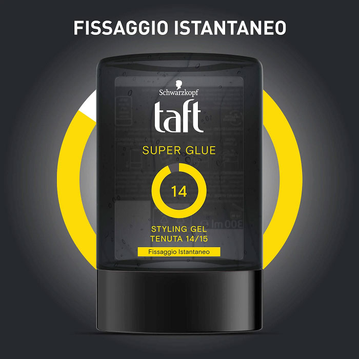 ژل حالت دهنده موی تافت سوپر گلو Taft Super Glue نگهدارنده بسیار قوی مو با تکنولوژی حفظ حالت فوری بوده و حاوی کافئین و پرو ویتامین B5 جهت تقویت مو می باشد.