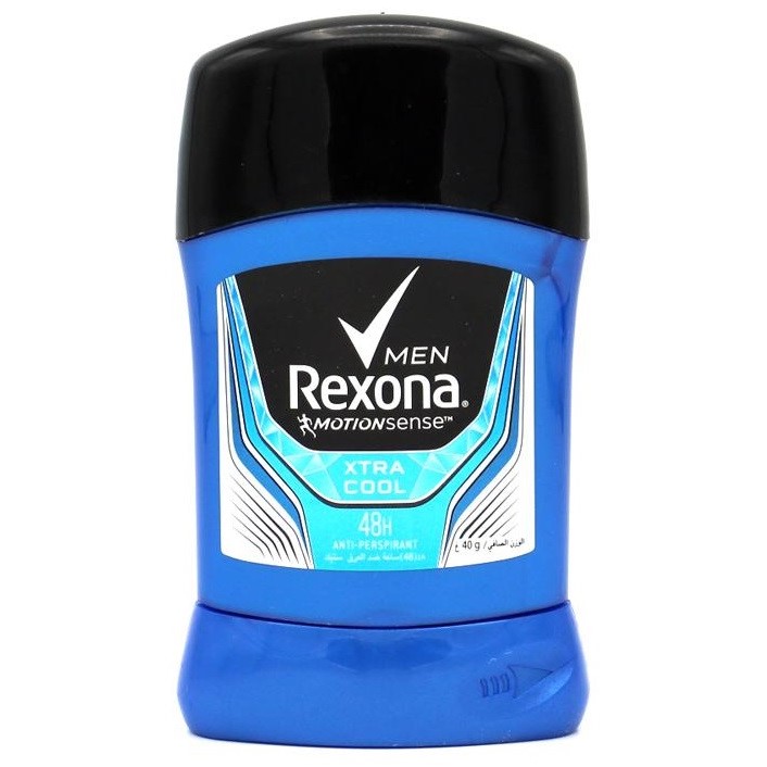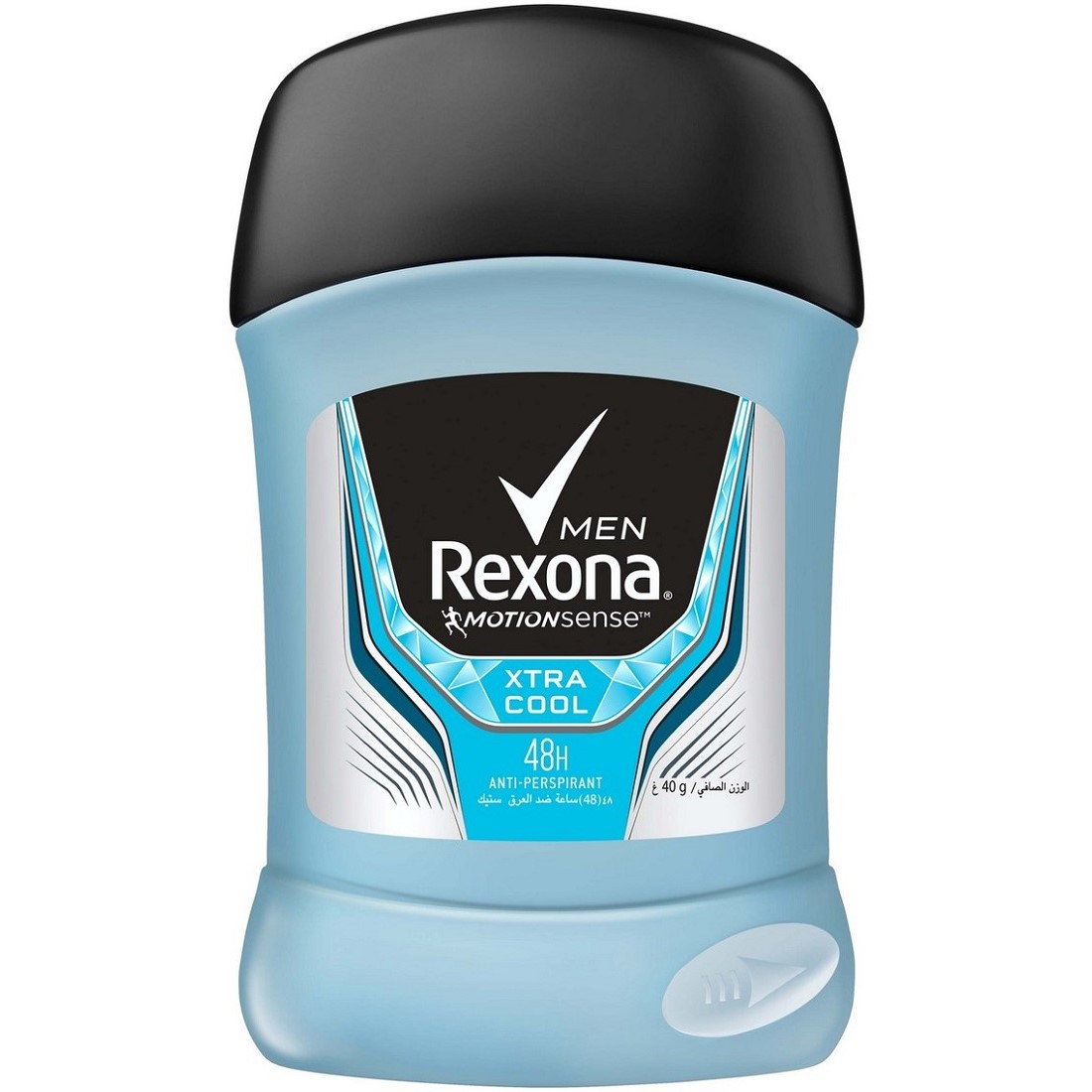 استیک ضد تعریق خنک کننده آقایان رکسونا اکسترا کول Rexona Men Xtra Cool محافظت کننده 48 ساعته در برابر تعریق و بوی عرق می باشد. استیک ضدتعریق رکسونا همچنین دارای تکنولوژی موشن سنس MotionSense جهت حفظ خشکی زیربغل در حالت حرکت و پرتحرک است. استیک اکسترا کول رکسونا توسط عصاره نعناع حسی خنک کننده و تازه را به ارمغان می آورد و در مجموعه ضدتعریق های انرژی دهنده رکسونا قرار دارد.