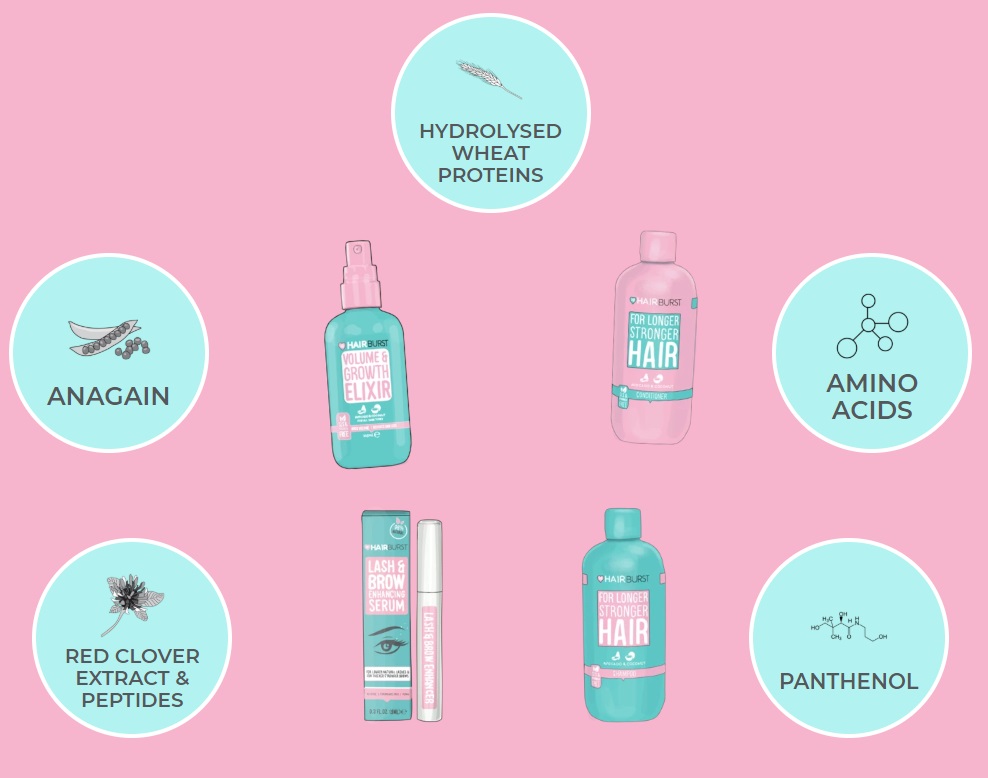 شامپو تقویت کننده و استحکام بخش هیربرست Hair Burst For Longer Stronger Hairs افزایش دهنده رشد مو و استحکام بخش و افزایش دهنده انعطاف پذیری موها جهت جلوگیری از شکنندگی می باشد. شامپو تقویت کننده هیربرست حاوی آووکادو و نارگیل جهت تغذیه کامل مو و پنتول (پرو ویتامین B5) جهت بهبود ظاهر و افزایش حجم است، علاوه بر این پروتئین گندم هیدرولیز شده جهت جلوگیری از دو شاخه شدن موها به فرمولاسیون آن اضافه شده است. مواد موثر گیاهی دیگر موجود در شامپوی هیربرست شامل آمینو اسیدها جهت رطوبت رسانی به ساقه مو و جلوگیری از آسیب مو در برابر عوامل محیطی از جمله ابزار حالت دهنده است.