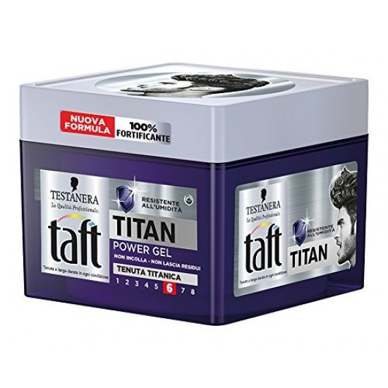 ژل حالت دهنده قوی موی تافت تایتان Taft Titane حاوی پرو ویتامین B5 پانتنول بوده و با درجه نگهدارنگی 6 حالت دهنده قوی مو می باشد. ژل موی تافت همچنین در برابر رطوبت مقاوم بوده و ایجاد سفیدک روی موها نمی کند.