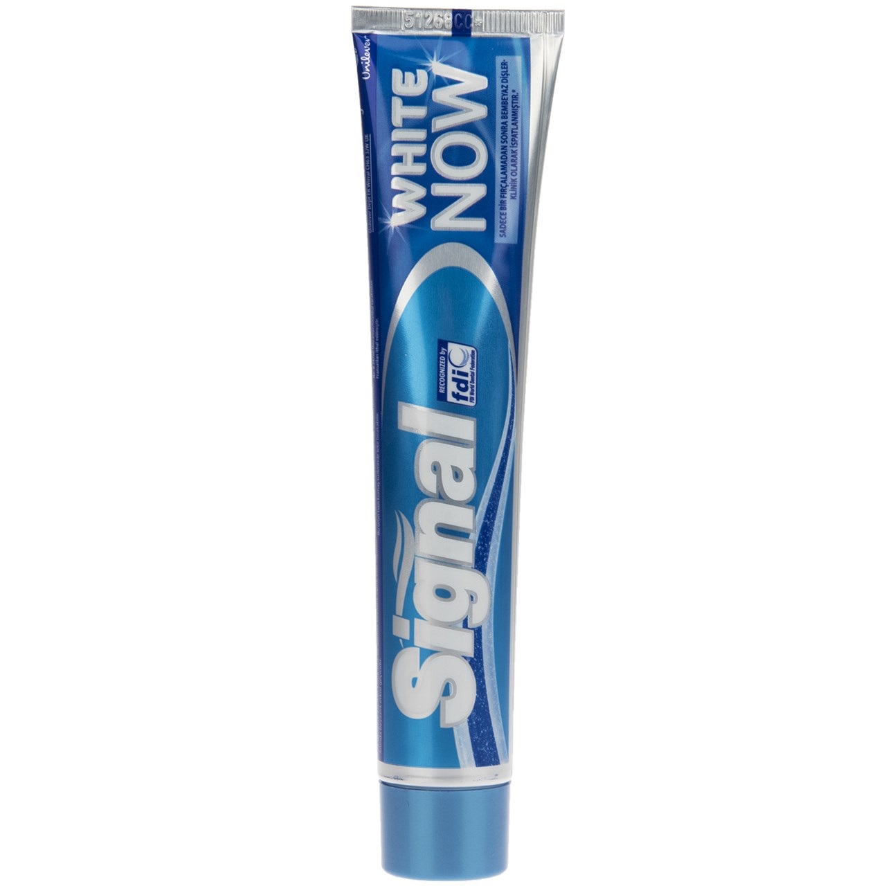 خمیردندان سفیدکننده سیگنال وایت نو Signal White Now حاوی ویژگی خاص سفید کنندگی فوری بوده و دارای فرمولاسیون ویژه است که لایه آبی نازکی روی مینای دندان پدید می آورد و به این ترتیب از زردی دندان ها می کاهد و جلوه ای بصری از لبخندی سفیدتر و درخشان تر به ارمغان می آورد.