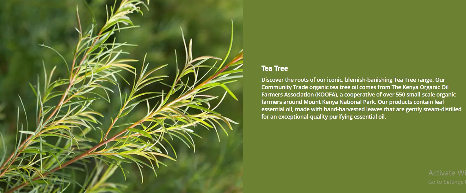 ژل دوش درخت چای بادی شاپ The Body Shop Tea Tree محصولی فوق العاده و فاقد صابون بوده و غنی شده با عصاره درخت چای دستچین شده توسط مردم محلی از کوهپایه های کوه های کنیا است. ژل دوش درخت چای بادی شاپ مناسب برای استفاده روزانه است و شفاف کننده پوست بوده و با فرمولاسیون کاملا گیاهی برای پوست های جوش دار مناسب می باشد.