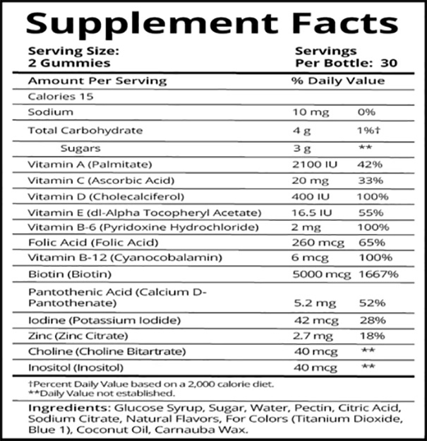 مکمل مولتی ویتامین تقویت موی شوگربیرهیر Sugarbearhair Hair Vitamins حاوی ویتامین های مورد نیاز جهت سلامتی موها می باشد، ویتامین هایی در وعده های غذایی روزانه تامین نمی شوند در مکمل تقویت کننده شوگربیرهیر به صورت پاستیل های جویدنی موجود است. مولتی ویتامین شوگربیرهیر مجموعه از ویتامین ها و مواد معدنی از جمله زینک، بیوتین، فولیک اسید و ویتامین D و هر آنچه افزایش رشد و حفظ سلامت موها مورد نیاز است را در خود جای داده است.