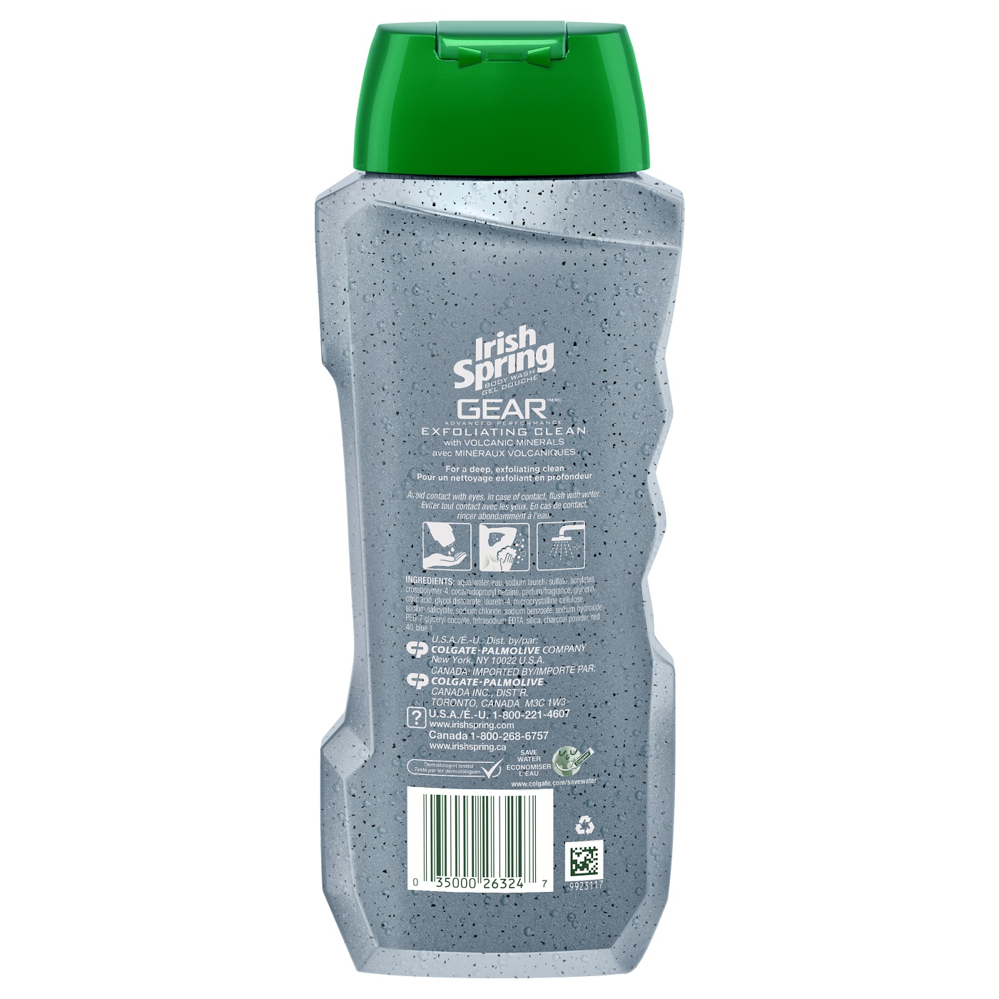 ژل دوش آقایان ایریش اسپرینگ Irish Spring Gear Exfoliating Clean محصولی بسیار باطراوت و نشاط آور بوده و حاوی مواد معدنی آتشفشانی جهت لایه برداری و پاک کنندگی عمیق پوست می باشد. ژل دوش ایریش اسپرینگ دارای تکنولوژی خنثی کننده 24 ساعته بوی نامتبوع عرق می باشد و محصولی انرژی دهنده و نشاط آور در برنامه مراقبت روزانه آقایان می باشد.