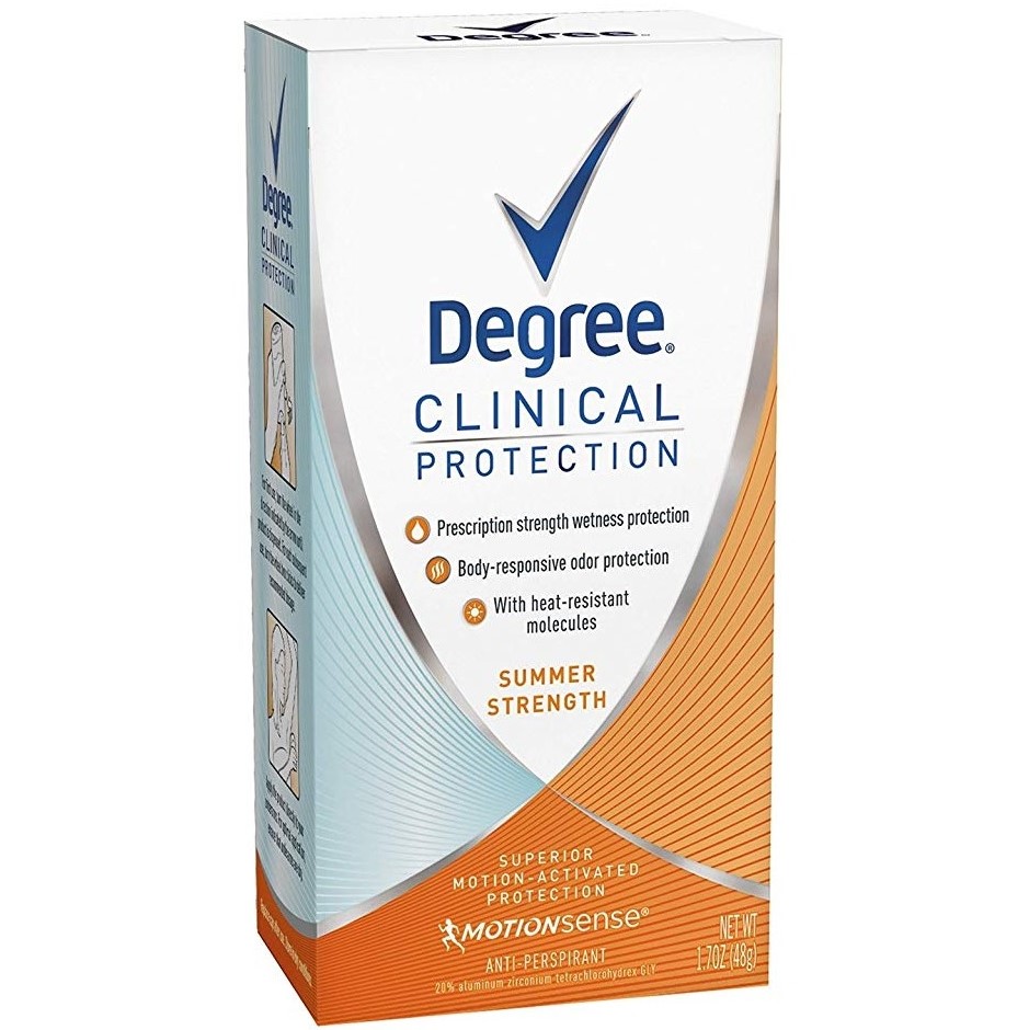 استیک ضدتعریق دگری کلینیکال پروتکشن Degree Summer Strength دارای ملکول های مقاوم در برابر گرما بوده و محافظت کننده خشکی زیر بغل در تمام طول روز می باشد. استیک ضدتعریق دگری دارای تکنولوژی ایجاد رایحه متناسب با پاسخ بدن جهت از بین بردن بوی نامتبوع عرق و ایجاد حس تازگی طولانی مدت است. علاوه بر این فناوری موشن سنس جهت محافظت کامل در حین حرکت و تحرک، مراقبت کاملی را فراهم کرده است.