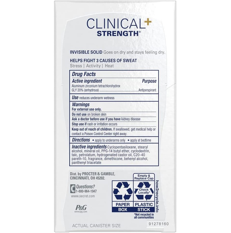 استیک دئودورانت سکرت کلینیکال Secret Solid Completely Clean محافظت کننده در برابر سه عامل ایجاد تعریق شامل استرس، تحرک و گرما می باشد. دئودورانت سکرت کلینیکال استرنج ضمن محفاظت کامل و 48 ساعته از خشکی زیر بغل، حاوی نرم کننده و تسکین دهنده جهت حفظ نرمی و جلوگیری از تحریک پوست است. علاوه بر این مزایا استیک سکرت کلینیکال دارای قدرت محفاظت کنندگی 4 برابر بیشتر در برابر تعریق ناشی از استرس می باشد.