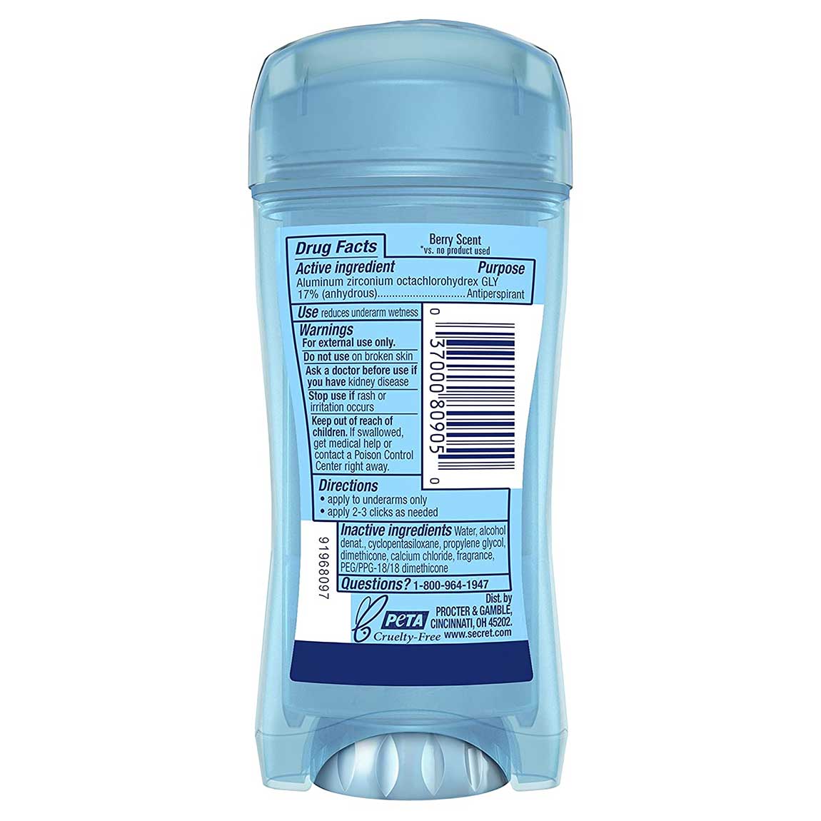 استیک ضدتعریق ژلی میوه های بری سکرت Secret Berry Clear Gel دارای رایحه دلپذیر میوه های بری تابستانی بوده و محافظت کننده کامل 48 ساعته در برابر تعریق و بوی عرق است. ضدتعریق و دئودورانت ژلی سکرت با جذب بوی عرق و رهاسازی تدریجی رایحه دلپذیر، محافظت کامل و پیوسته ای را از تمیزی و تازگی زیر بغل به ارمغان می آورد.