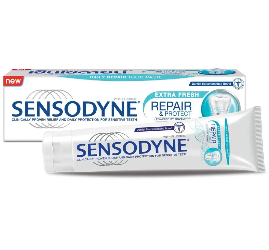 خمیردندان ترمیم کننده سنسوداین اکسترا فرش Sensodyne Repair and Protect Extra Fresh برای دندان های حساس طراحی شده است و با تازگی بخشی اضافی ترمیم کننده روزانه جهت افزایش استحکام و جلوگیری از ایجاد درد و همچنین بازسازی کننده سفیدی طبیعی دندان می باشد.
