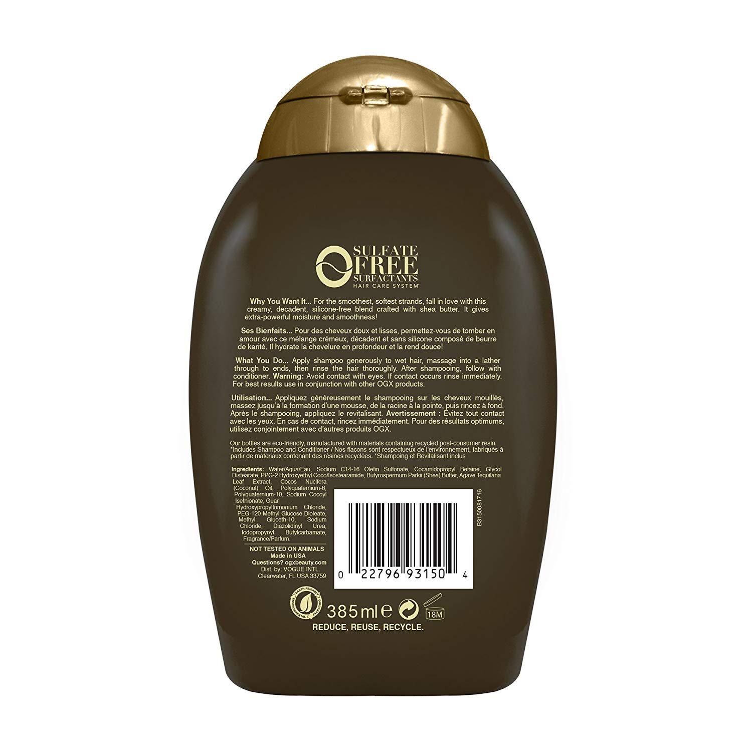 شامپو ضد وز شی باتر او جی ایکس Ogx Shea Soft and Smooth آبرسانی بسیار قوی بوده و موهایی نرم و صاف را به ارمغان می آورد. شامپو ضد وز موی او جی ایکس حاوی عصاره های طبیعی شی باتر، گیاه آگاو که نوعی گیاه بومی قاره آمریکا و شبیه کاکاتوس است و همچنین روغن نارگیل بوده که عمیقا موها را تغذیه، نرم و صاف می کند. این عصاره های طبیعی در کنار رایحه دلپذیر و عدم وجود سولفات و سیلیکون در فرمول آن، محصولی فوق العاده را به وجود آورده است.