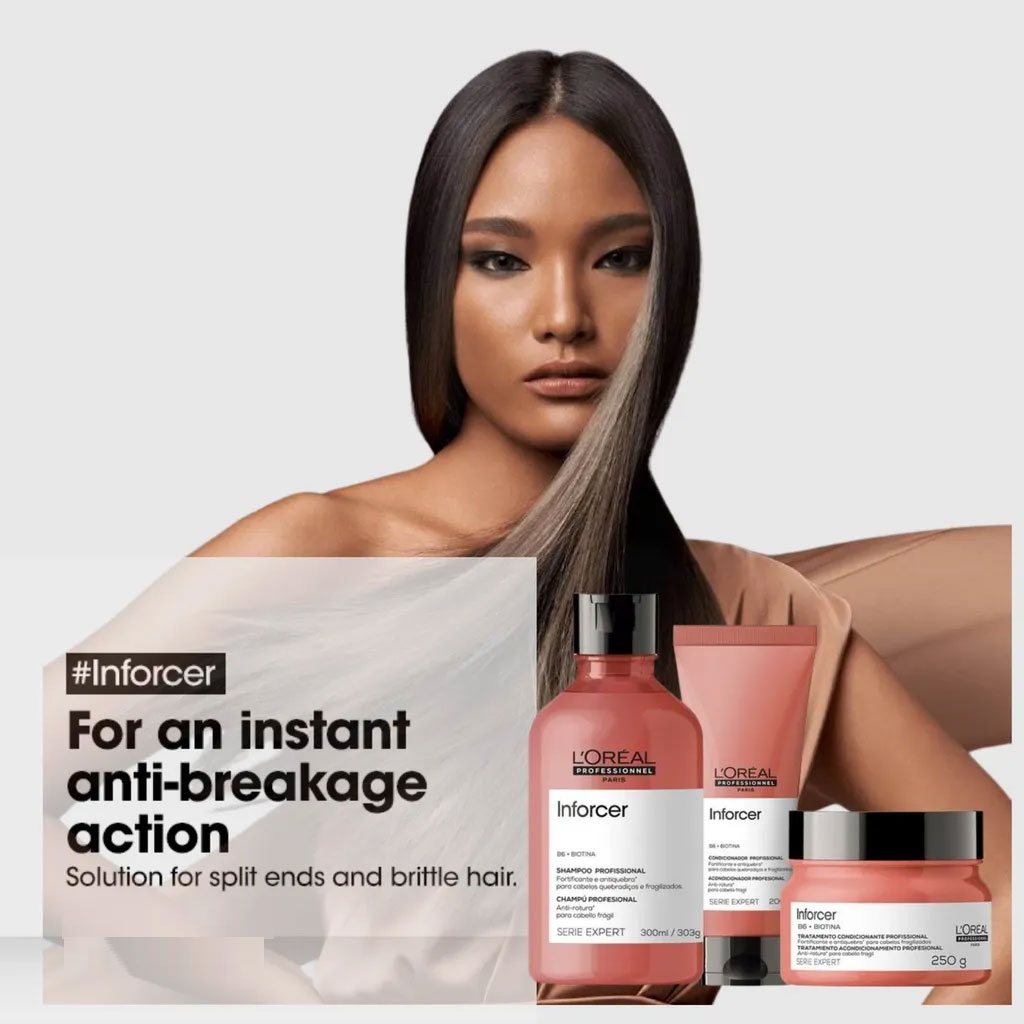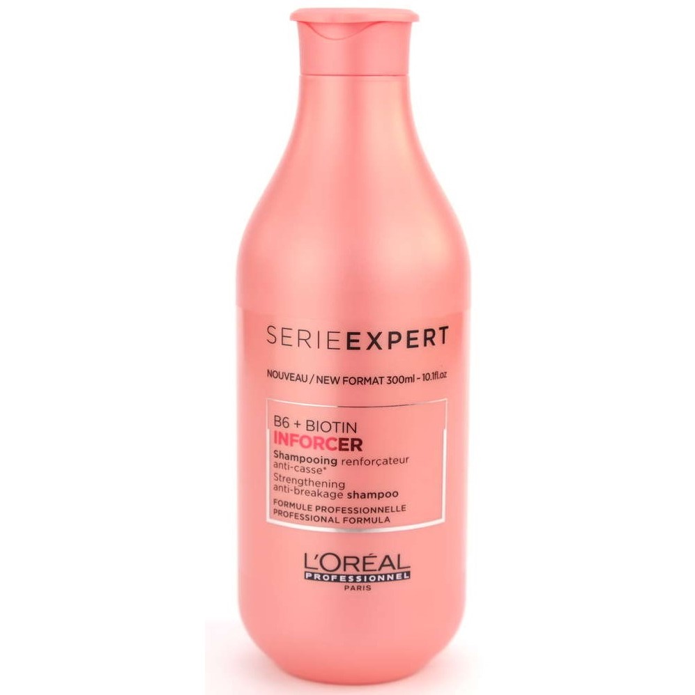 شامپو استحکام بخش و ضد شکنندگی موی لورال سری اکسپرت LOreal Inforcer دارای فرمول پیشرفته سالنی با الهام از فناوری درمانی و مراقبت از پوست لورال و مواد موثر باکیفیت از جمله کمپلکس ویتامین B6 و بیوتین (ویتامین B7) جهت استحکام بخشی موهای شکننده و کاهش شکنندگی موها می باشد. موها به علت عوامل محیطی مانند شانه کردن دچار شکنندگی می شوند، کمپلکس ویتامین B با فرمول حرفه ای اکسپرت لورال ضمن ترمیم آسیب دیدگی و شکنندگی موها به ویژه موهای بلند، از دوشاخه شدن موها در اثر کمبود مواد مغذی و خشکی جلوگیری می کند. این ترکیب همراه با افزایش استحکام تارهای مو، با تغذیه عمقی موجب لطافت بخشی و درخشندگی زیبای موهای سالم و منعطف می شود.