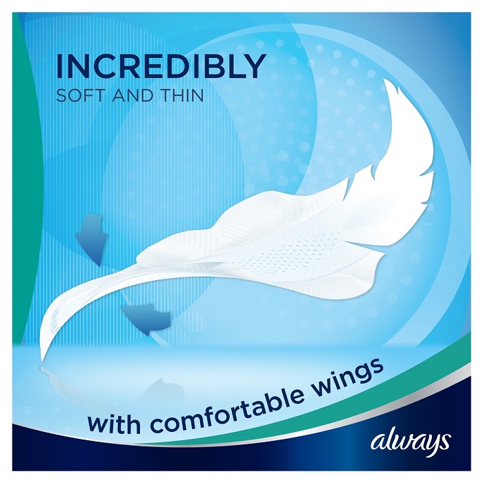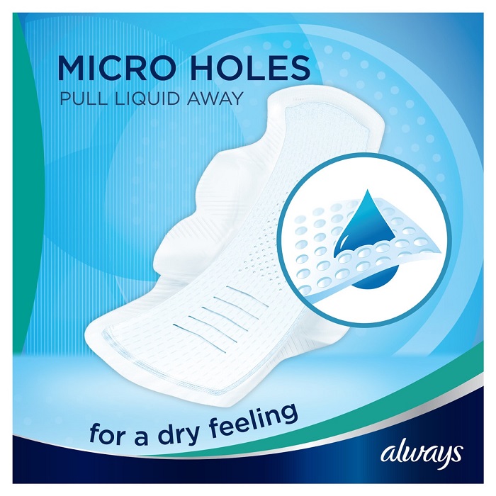 نوار بهداشتی آلویز اینفینیتی Always Infinity Smart Foam Normal دارای بافت فوم هوشمند با قابلیت هماهنگی با الگوی بدن و انعطاف پذیری می باشد. نوار بهداشتی اینفینیتی آلویز همچنین دارای قدرت جذب به اندازه 10 برابر وزن خودش را دارد و به کمک میکرو حفره های موجود در مرکز آن مایعات را جذب می کند.