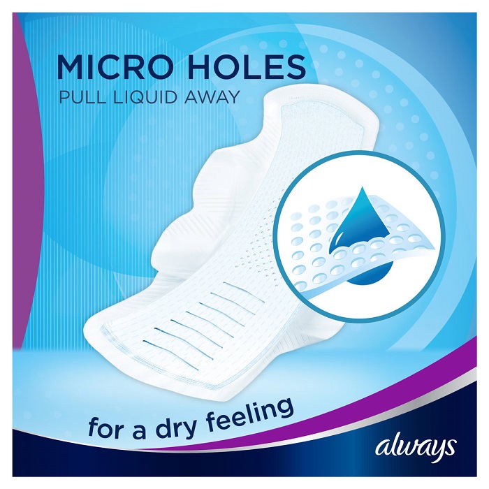 نوار بهداشتی آلویز اینفینیتی سایز بلند Always Infinity Smart Foam Long دارای بافت فوم هوشمند با قابلیت هماهنگی با الگوی بدن و انعطاف پذیری می باشد. نوار بهداشتی اینفینیتی آلویز همچنین دارای قدرت جذب به اندازه 10 برابر وزن خودش را دارد و به کمک میکرو حفره های موجود در مرکز آن مایعات را جذب می کند.