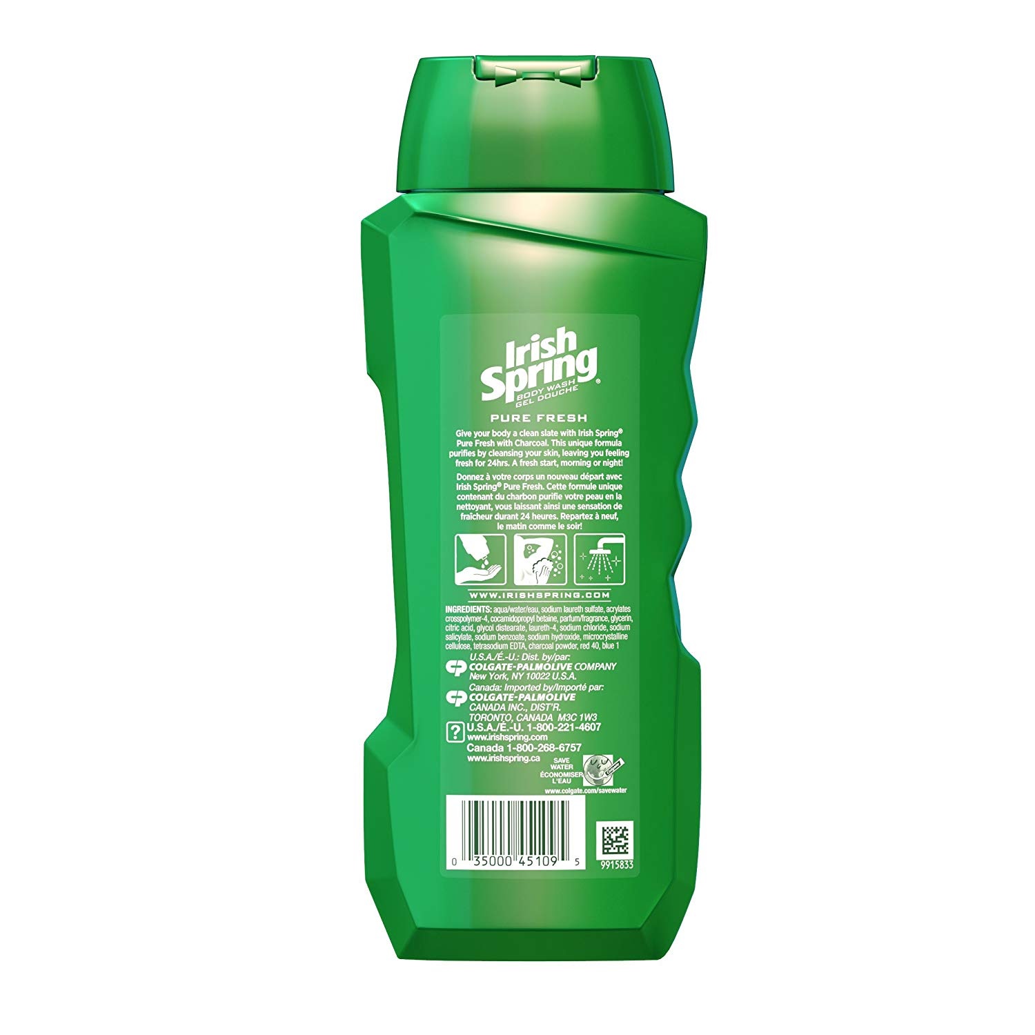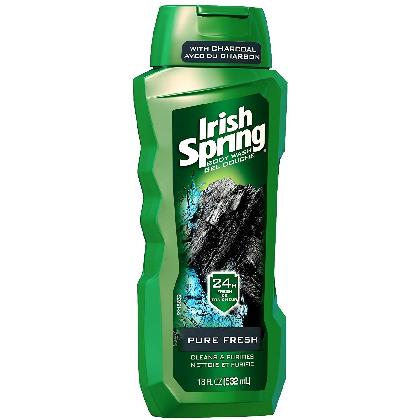 ژل دوش آقایان ایریش اسپرینگ حاوی شارکل Irish Spring Pure Clean حاوی ذغال شارکل جهت پاک کنندگی کامل و پاکسازی خالص پوست با حس طراوت بخش می باشد. شامپو بدن ایریش اسپرینگ توسط تکنولوژی خنثی سازی بوی نامتبوع عرق، محافظت کننده 24 ساعته تازگی بدن است.