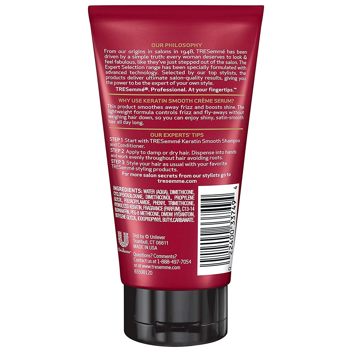 کرم کراتینه صاف کننده و درخشان کننده موی ترزمی TRESemme Keratin Smooth دارای فرمول سبک و حاوی کراتین بوده و صاف کننده موهای وز و رها در هوا است.کرم صاف کننده ترزمی همچنین درخشندگی موها را افزایش داده و در تمام طول روز از موهای نرم و درخشان مانند ساتن لذت ببرید.
