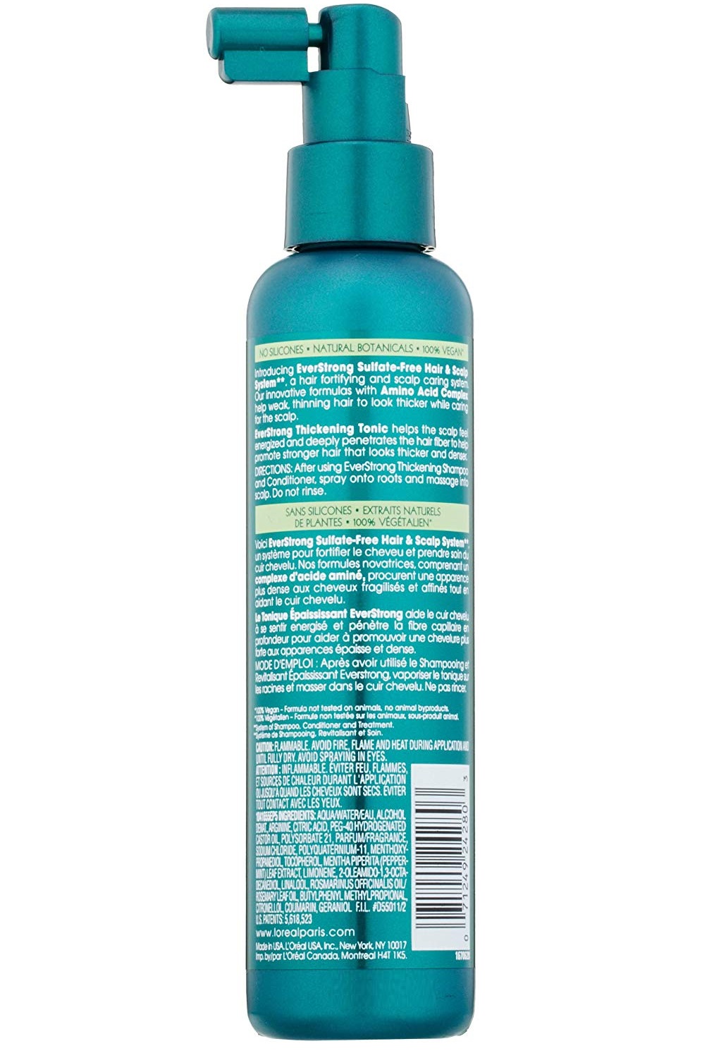 تونیک ضخیم کننده موی لورال LOreal Ever Strong دارای فرمول کاملا گیاهی و حاوی کمپلکس آمینو اسید و رزماری و نعناع بوده و تقویت کننده و ضخامت بخش مو می باشد. تونیک موی لورال با سیستم بدون سولفات و عصاره های طبیعی انرژی دهنده پوست سر می باشد و ظاهری ضخیم تر به موها می بخشد.