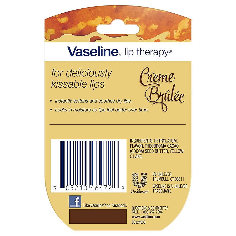 بالم مرطوب کننده لب وازلین رایحه کرم برولی Vaseline Creme Brulee محصولی بسیار خوب جهت نرم کنندگی و رطوبت رسانی به لب های خشک و پوسته پوسته می باشد. مرطوب کننده لب وازلین غنی شده با ویتامین E و حاوی ژل وازلین بوده و علاوه این با رایحه شیرین و دوست داشتنی کرم برولی به لب ها ظاهری طبیعی و براق می دهد.