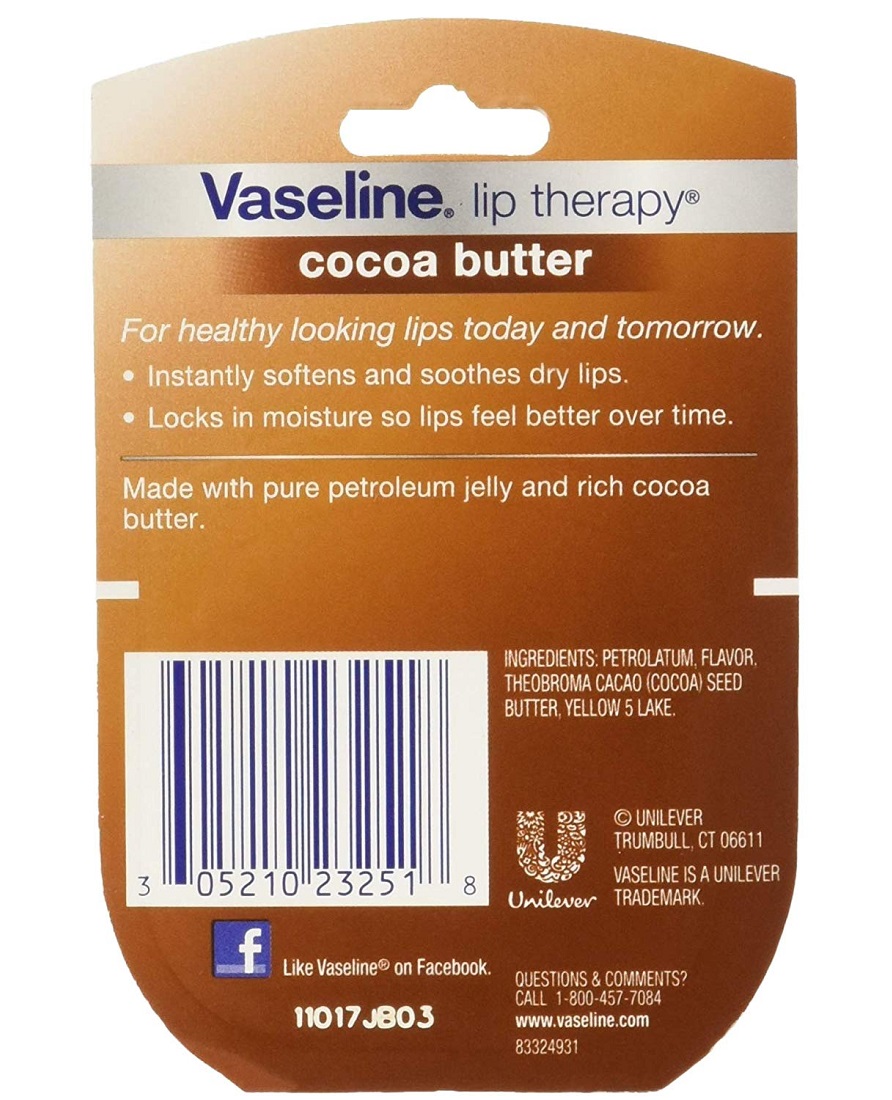 بالم مرطوب کننده لب وازلین حاوی کره کاکائو Vaseline Cocoa Butter محصولی بسیار خوب جهت نرم کنندگی و رطوبت رسانی به لب های خشک و پوسته پوسته می باشد. مرطوب کننده لب وازلین غنی شده با کره کاکائو، ویتامین E، گلیسیرین و حاوی ژل وازلین بوده به لب ها ظاهری طبیعی و براق می دهد.