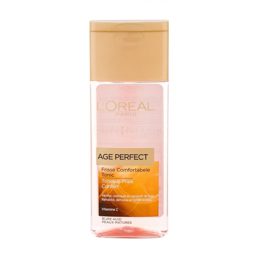تونر پاک کننده و ضدپیری لورال ایج پرفکت LOreal Age Perfect غنی شده با ویتامین C و منیزیم جهت پاک کنندگی و طراوت بخشی پوست های بالغ و رو به سن می باشد. تونر ایج پرفکت لورال توسط مواد موثر از جمله ویتامین C و پرو ویتامین B5 برای ترمیم کنندگی، شادابی و روشن کنندگی پوست ضمن مقابله با چین و چروک ها موجب افزایش استحکام و شفافیت پوست می شود.