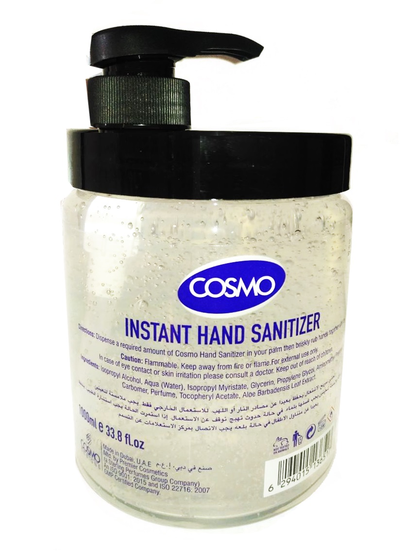 ژل ضدعفونی کننده دست کاسمو Cosmo Sanitizer از بین برنده کامل و فوری میکروب ها، باکتری ها و آلودگی های سطح پوست می باشد. ژل ضدعفونی کننده کاسمو از بین برنده 99.9 درصد میکروب های ایجادکننده بیماری است و علاوه بر این حاوی مرطوب کننده فعال و ویتامین E جهت رطوبت بخشی و نرمی پوست است، کافی است مقداری از ژل را میان دست ها ماساژ دهید تا خشک شود.